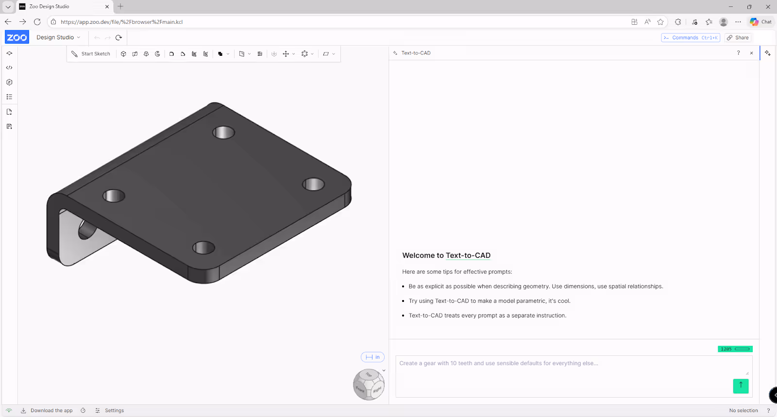 Its text-to-CAD feature can be accessed with a button in the toolbar of the Zoo Design Studio app. Once you enter a text prompt, a model will be produced within 60 seconds or more, depending on the complexity of the design you’re looking for.