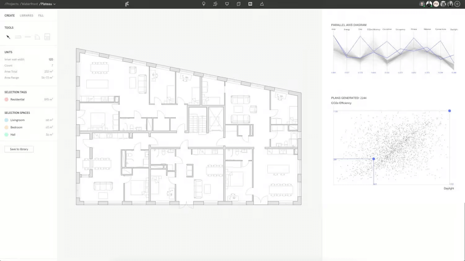 When it comes to AI design tools for architects and real estate developers for assessing site potential, Archistar is a great option. This generative design tool uses site and environmental data to provide feedback on what’s possible on a plot before heavy modeling starts.