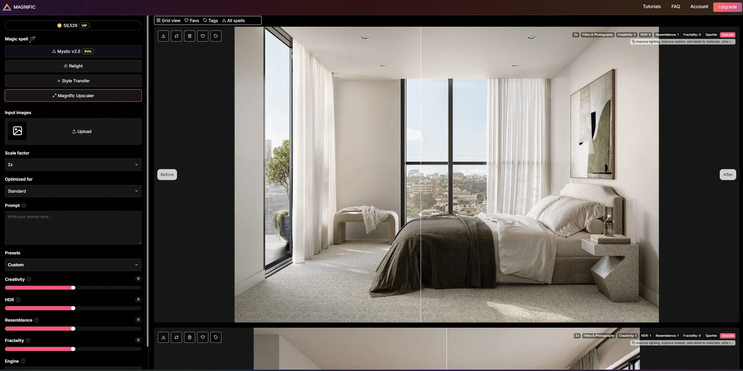 Magnific is one of the top AI render enhancers, both for architectural and interior design use cases.
