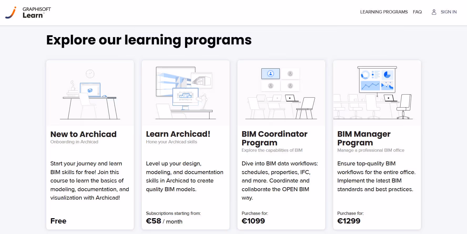 Cost: Starts free with Archicad subscription (some advanced courses require SSA/Forward contract)