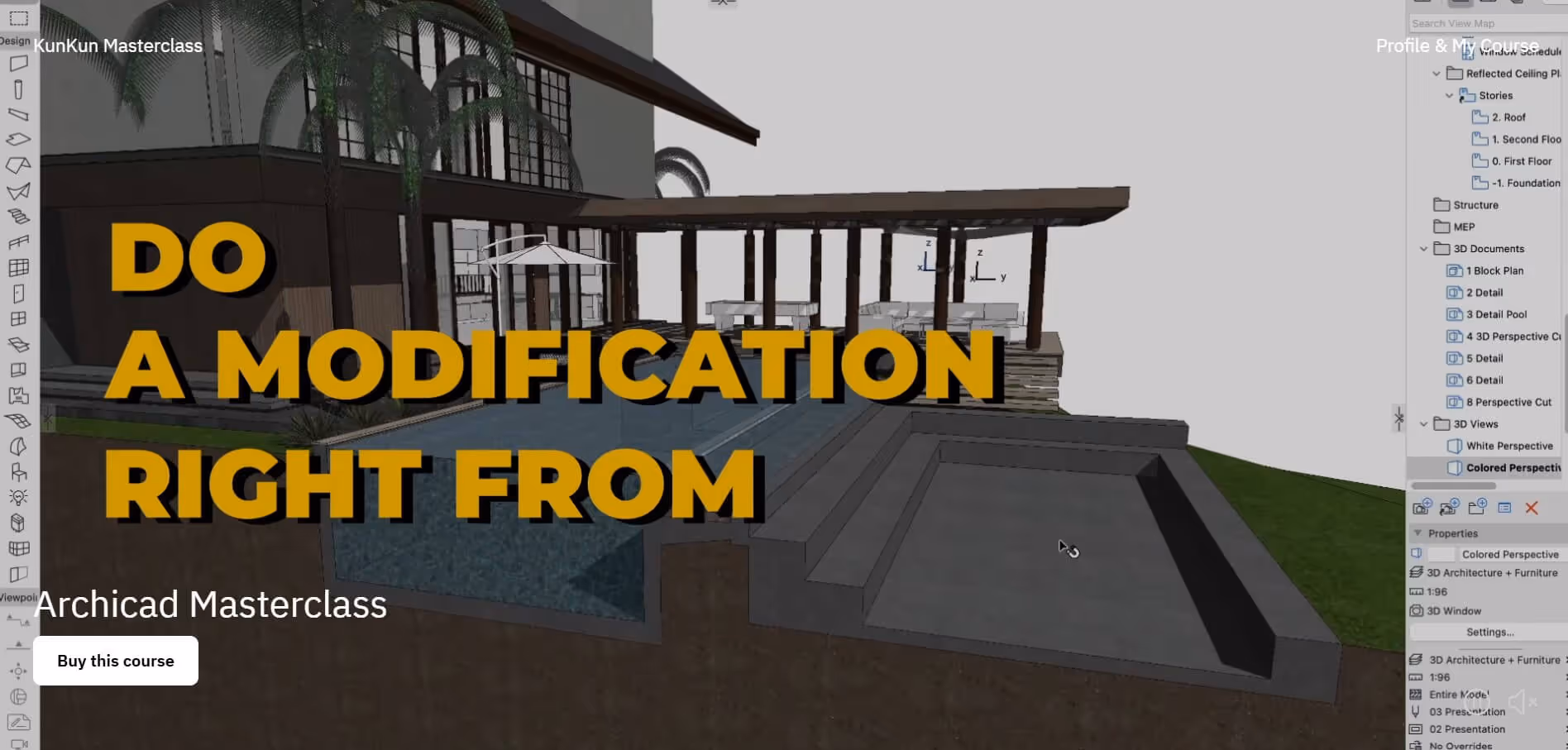 Created by KunKun Visual, an Indonesian architectural visualization studio known for their award-winning CGI work and Enscape training, this course teaches Archicad through a complete project workflow. You'll move from schematic design through design development to final documentation and presentation, mirroring how real projects actually progress.