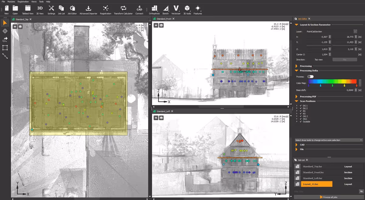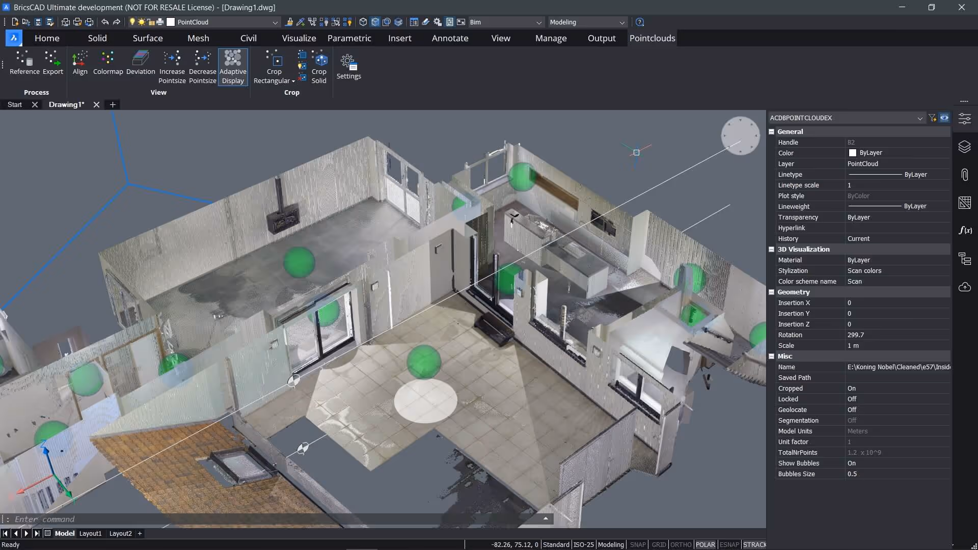 PointCAB takes a slightly different approach to scan-to-BIM AI. You import point-cloud data, use Origins’ vectorization and sectioning tools, and with the dedicated plugin send selected geometry directly into Revit, ArchiCAD, or BricsCAD. This software is platform-agnostic; it exports to CAD/BIM formats and supports multiple systems.