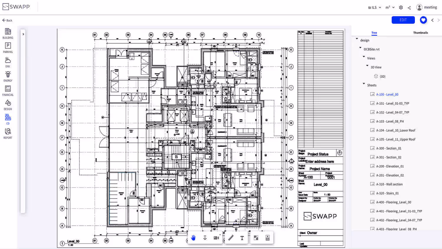 SWAPP attacks architecture's most tedious task: producing construction documents. Feed it your 3D model and SWAPP's AI generates complete drawing sets, including sections, elevations, details, door schedules, finish schedules—everything.