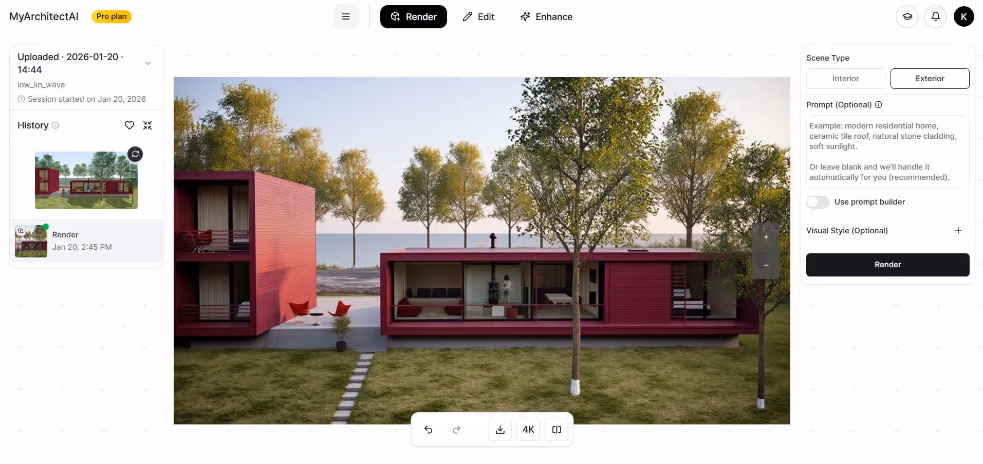 If you're looking for the absolute quickest and most effortless cloud rendering experience, you'll love MyArchitectAI.