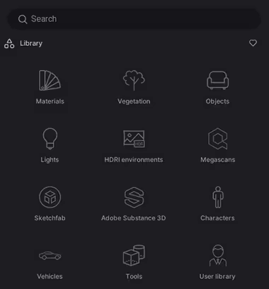 Twinmotion holds its ground with around 10,000 built-in drag-and-drop assets. But the real advantage is the Epic Games ecosystem: it integrates with Quixel Megascans (photogrammetry-scanned assets) and Sketchfab, giving you access to hundreds of thousands of additional high-quality models and materials. This alone makes Twinmotion's asset pipeline nearly unlimited.