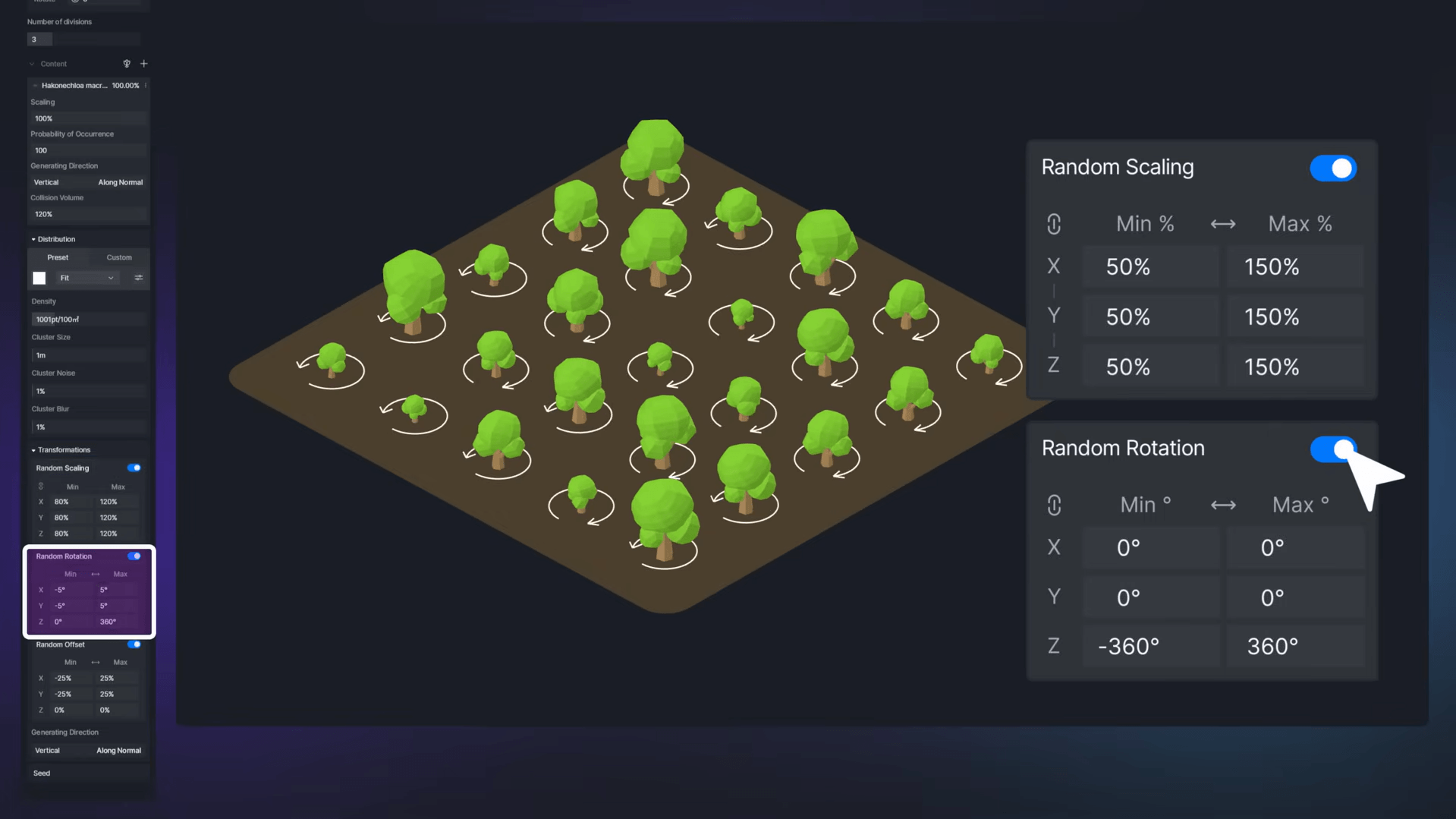 The D5 Scatter tool lets you paint and layer vegetation with randomized placement for natural-looking landscapes.