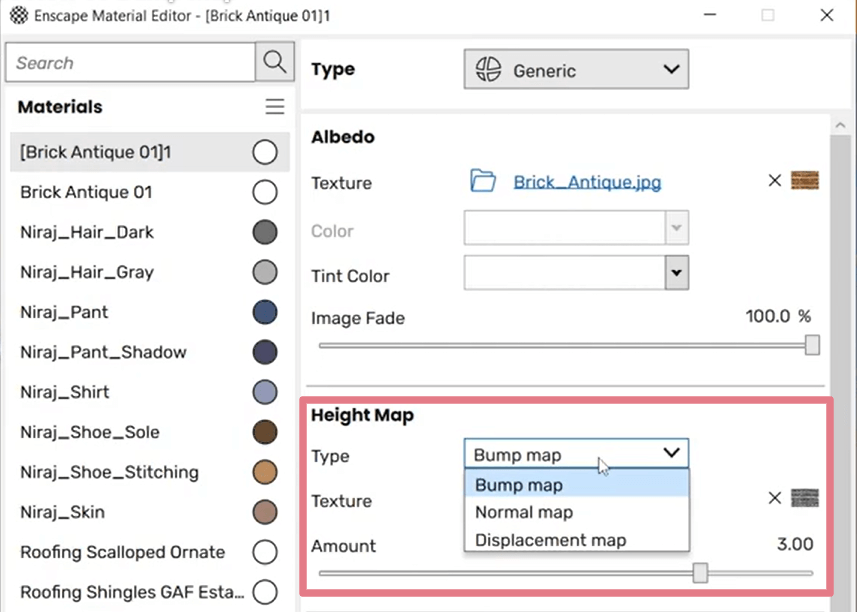 Enscape’s documentation doesn't understate this: height maps are incredibly valuable for realism. Take a flat wood floor that looks like a printed decal; add a bump or displacement map, and suddenly you can see the grain catching light at different angles. This setting works for concrete noise, tile grout lines, fabric weaves, and even full reliefs.