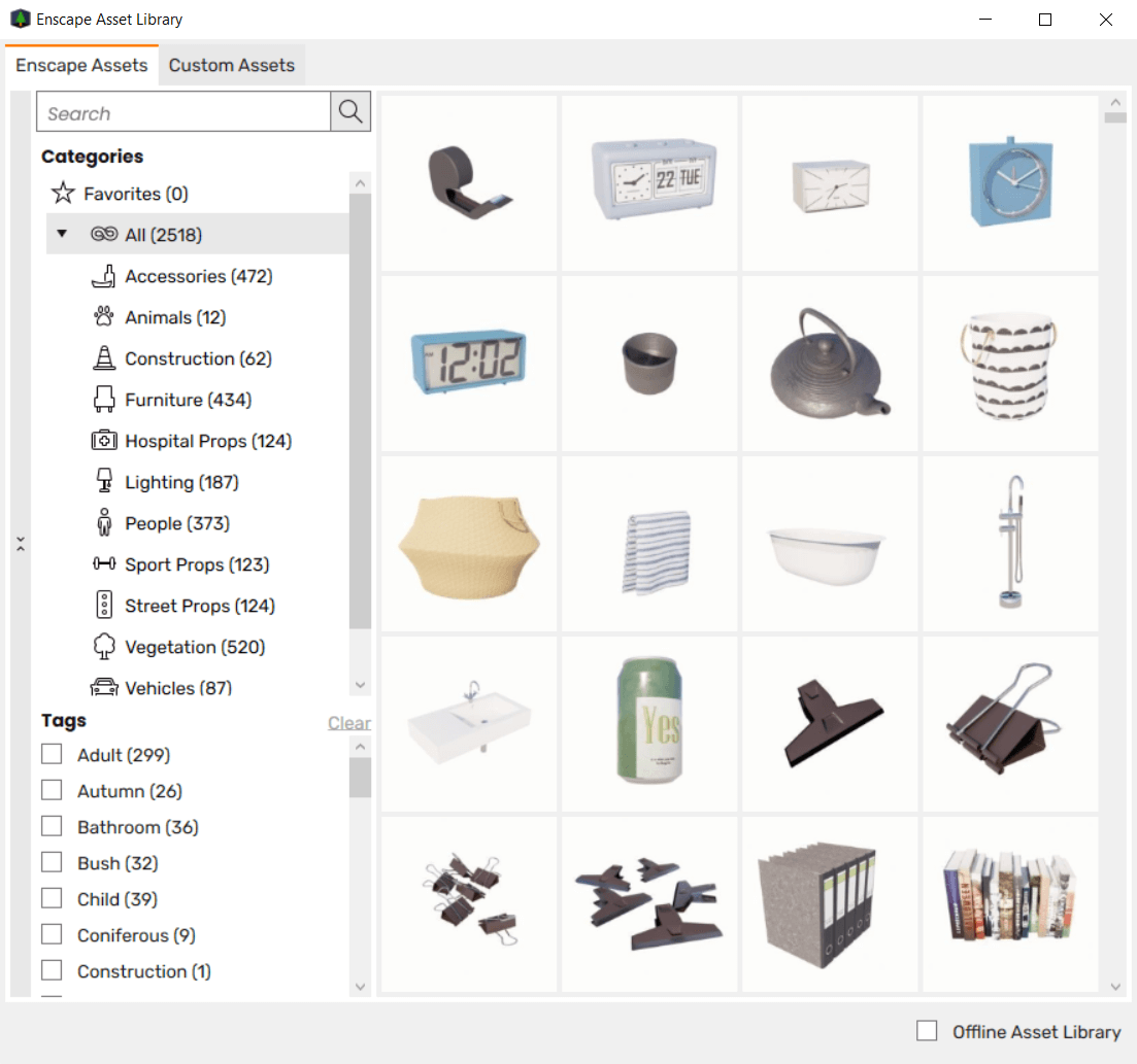 Empty rooms always look fake. Enscape's Asset Library includes thousands of high-quality furniture pieces along with plants, people, and decorative objects. Adding these elements creates visual interest, catches light in interesting ways, and makes spaces feel inhabited.
