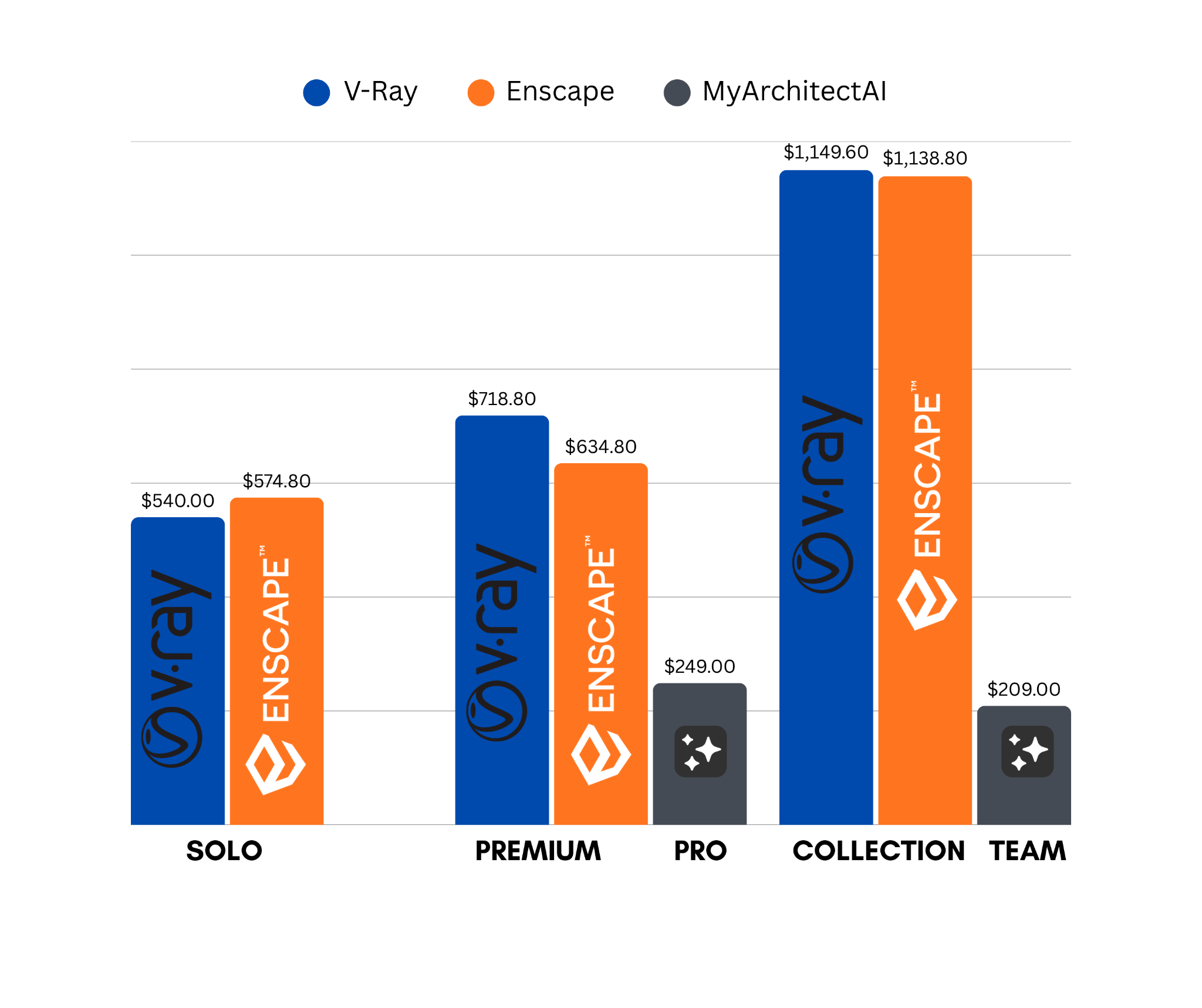 Here's an overview of V-Ray and Enscape pricing plans: