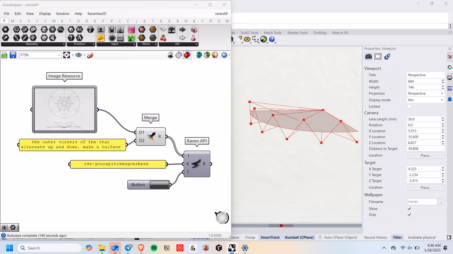 Raven is an AI tool for Grasshopper that lets you ‘talk’ to Grasshopper. Instead of writing scripts manually, you can describe what you want, and Raven does it for you. It’s ideal for beginners who are still learning parametric design, as well as professionals who want to speed up workflows or simplify complex Grasshopper tasks.
