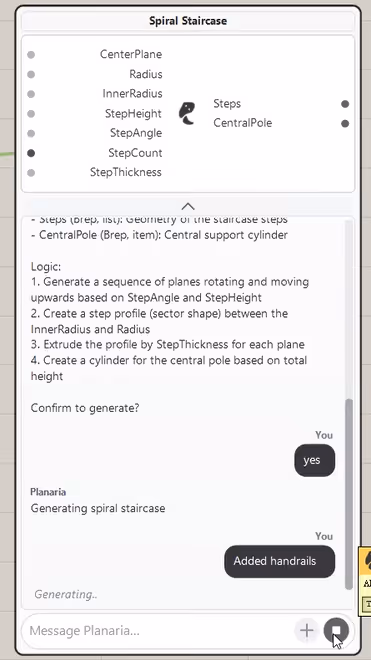 Planaria AI is a Grasshopper AI plugin that streamlines Grasshopper modeling by generating components with AI. Built specifically for Grasshopper with deep RhinoCommon knowledge, it avoids common API errors, understands Grasshopper component structures, and self-corrects. All you need to do is describe what you want, generate the components, and iterate.