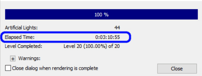 Hit the Render button and grab a coffee (or lunch?). Revit will show you a progress bar and estimated time remaining.