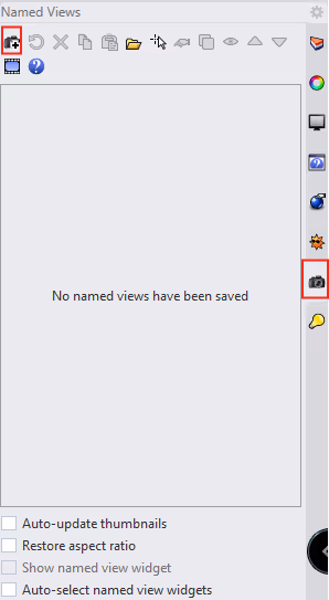 Using the pan, rotate, and zoom tools, find a good view. To save your view, click the “Named View” button in the right side panel. Then, click the “Save As” button in the Named View tab to save your current view.