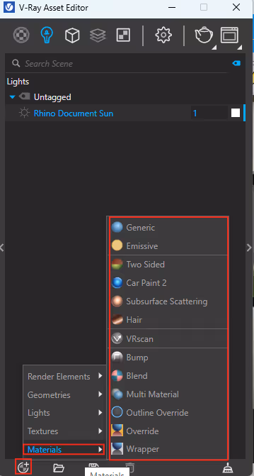 1. Open Asset Editor (V-Ray > Asset Editor)