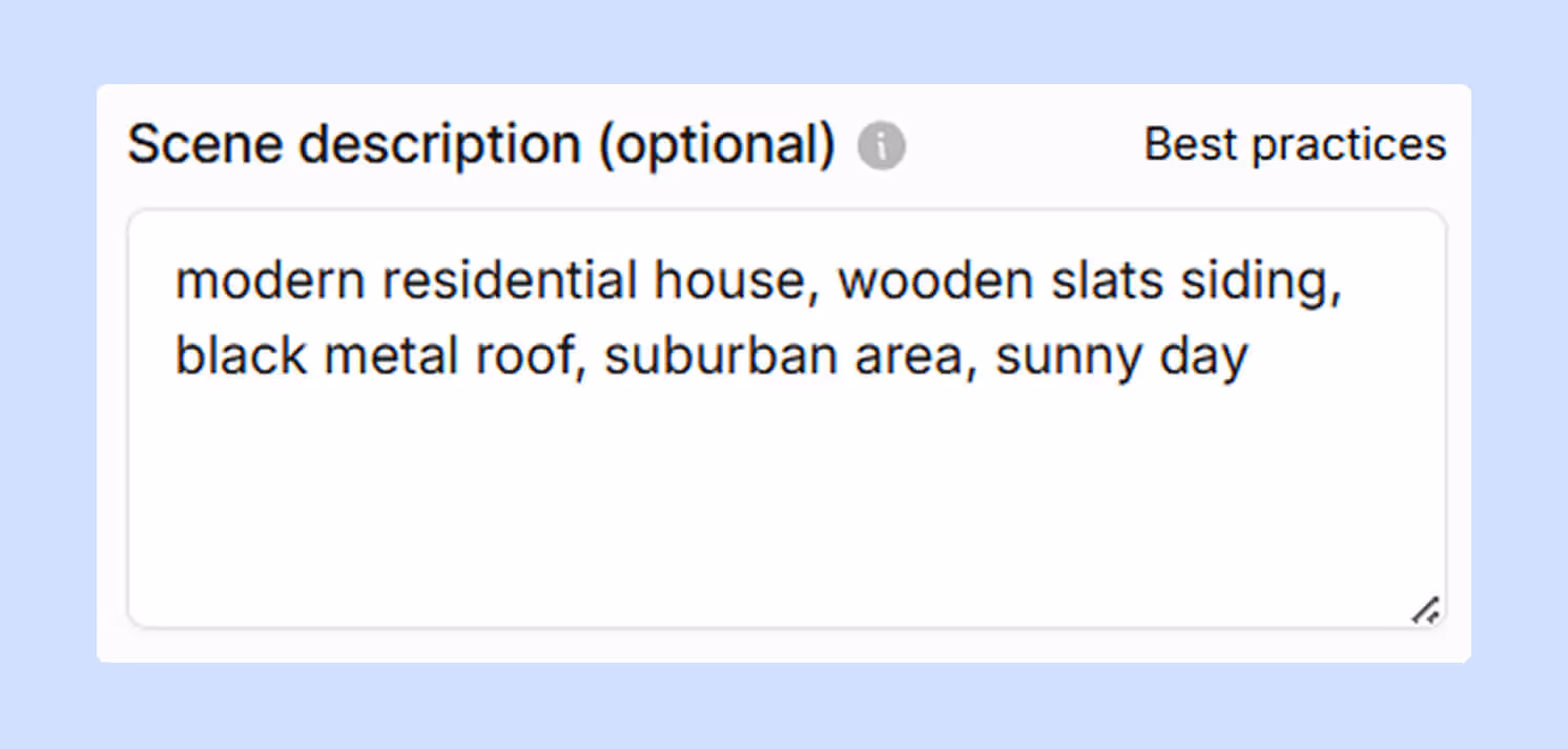 4. To fine-tune the details, you can provide the AI with a scene description explaining how you want the final render to look, including the theme, materials, lighting, and overall mood. This step is optional.