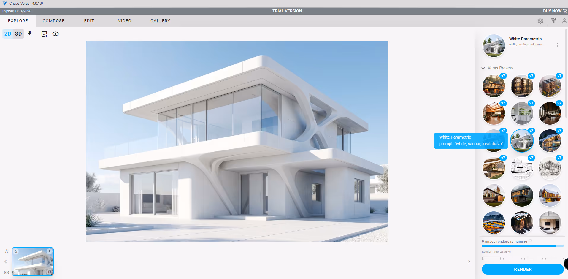 Veras is an architecture-focused AI renderer that, like MyArchitectAI, is built specifically for visualization rather than general image generation. It sits on the higher end of the pricing spectrum, but makes up for it with deep integration into existing CAD and BIM workflows.