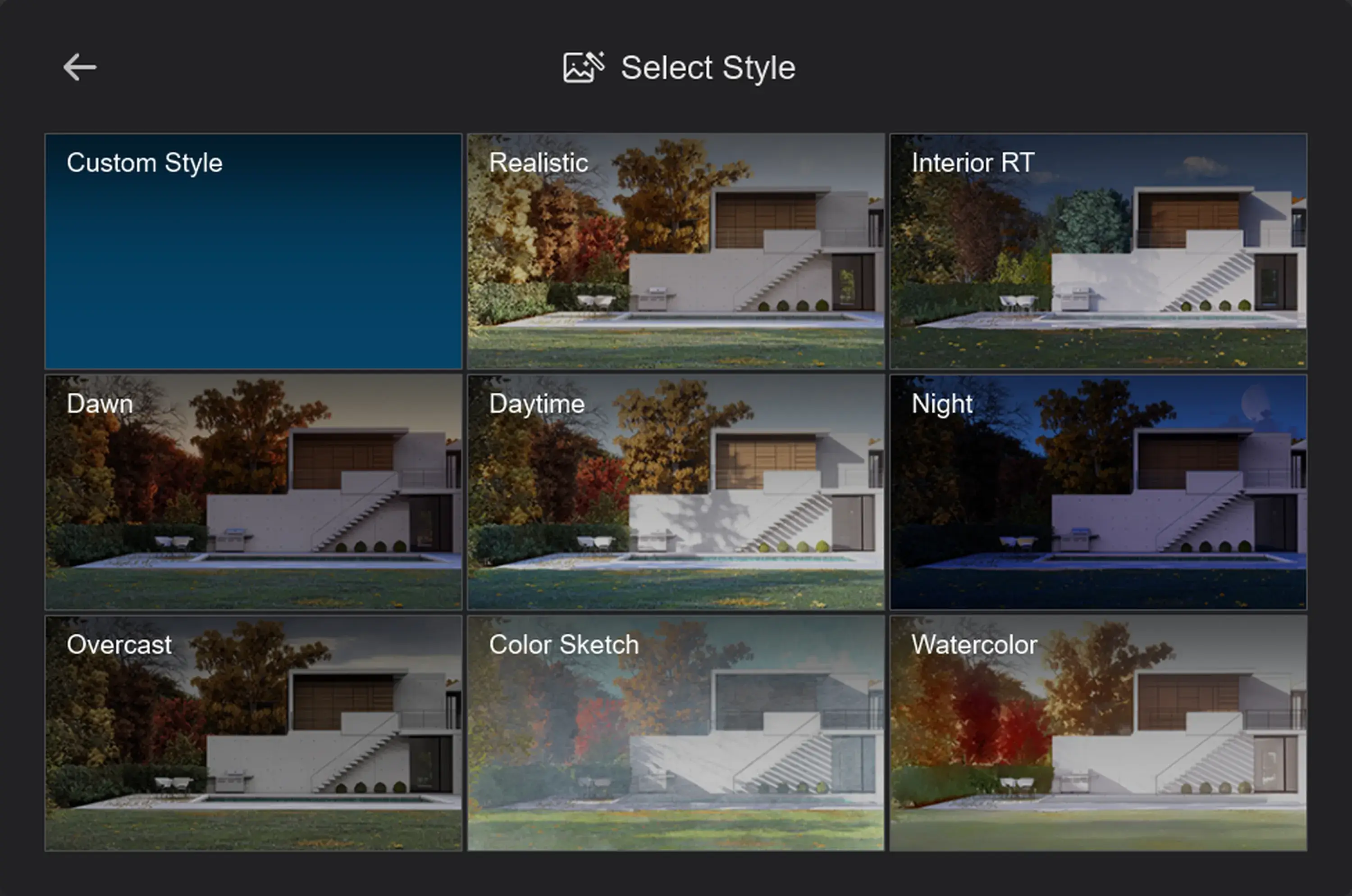 You can also use Lumion's built-in Styles as starting points. Apply a Style, then open the effects stack and modify individual settings to suit your scene. The Lumion render presets built into Styles cover common scenarios (Realistic, Interior RT, Exterior, etc.), but they always benefit from scene-specific adjustments.