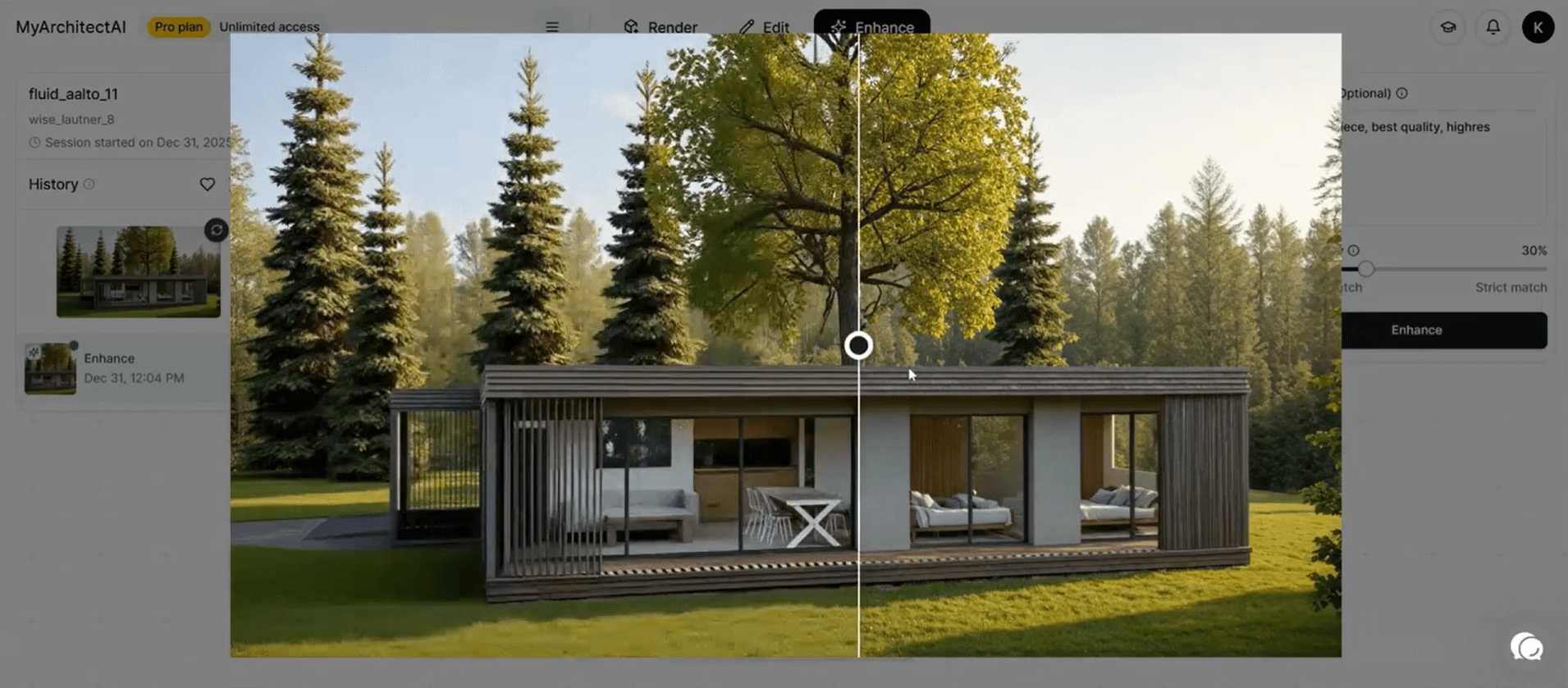 If you want to push your Lumion renders further in post-processing, MyArchitectAI's Lumion AI enhancer comes in.