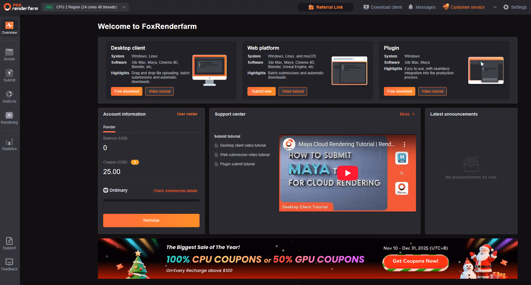 Founded in 2011, Fox Render Farm is one of the top-rated render farms today, with clients in 100+ countries rendering more than 60,000,000 frames per month, offering competitive render farm price options at scale.