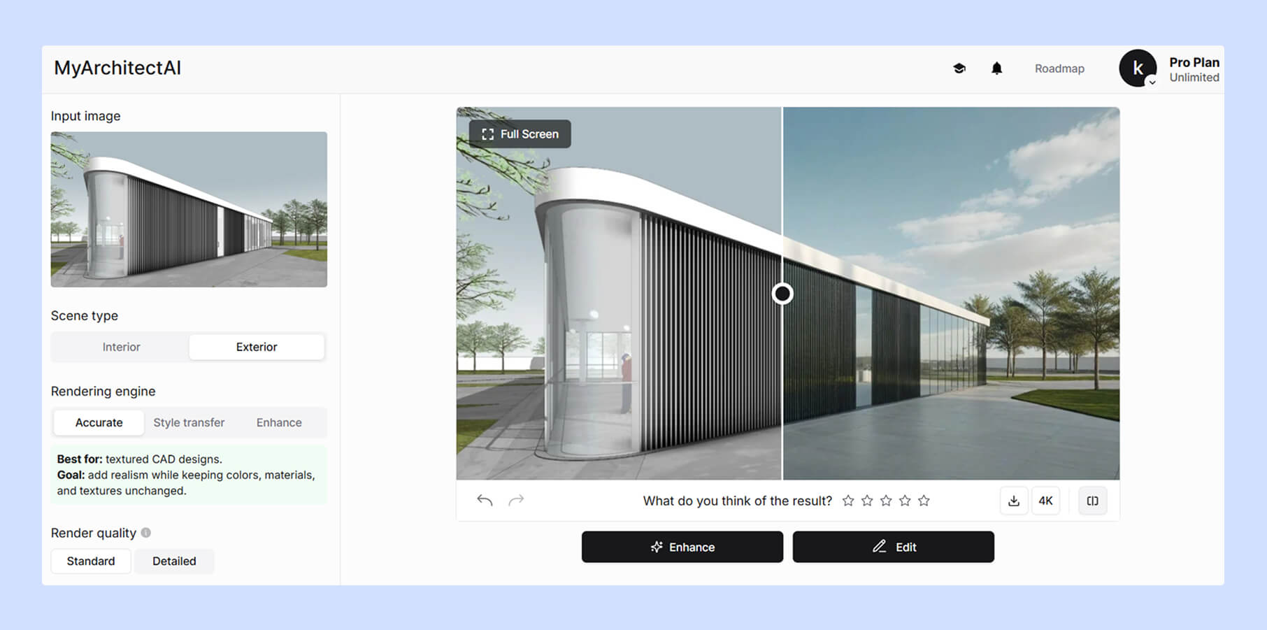 While most renderers require significant manual effort, time-consuming processes, and high computing power, MyArchitectAI lets you turn your SketchUp designs into photorealistic renderings even with no prior experience.