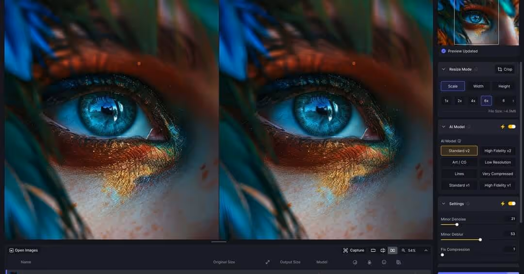 What it does: Upscales images while preserving or rebuilding detail with AI.