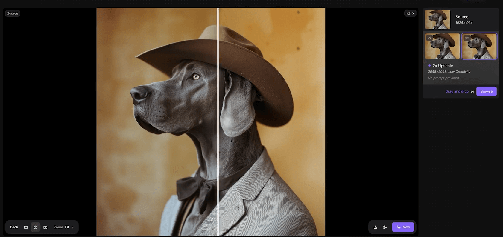 This is Topaz Labs’ creative upscaler. It not only improves the quality of your images, but it also adds new details, hence “creative” upscaler. It focuses on generative AI and works best on AI-generated images.