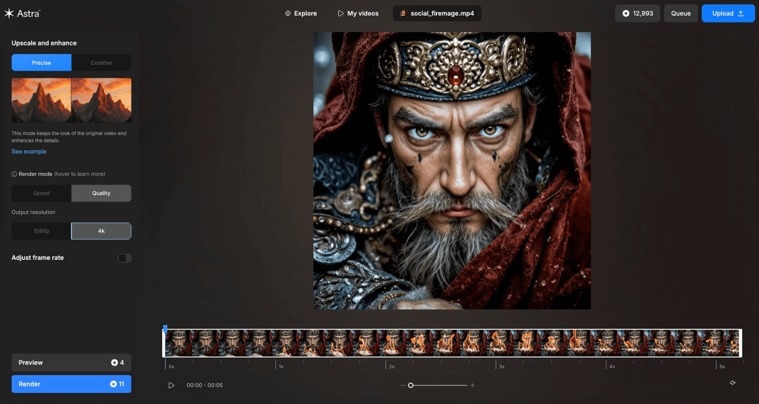 What it does: Upscales AI-generated video to crisp 4K resolution.