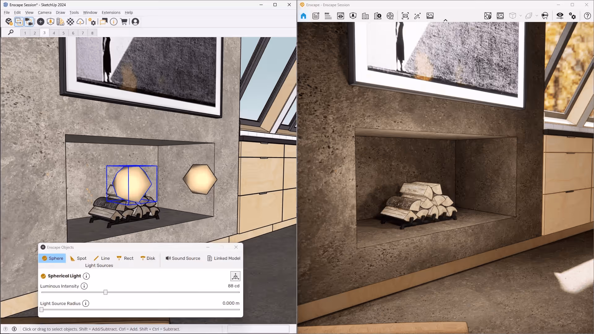Enscape's focus on speed and simplicity carries through to its lighting controls. Settings are handled through sliders and straightforward parameters, keeping things accessible without requiring deep technical knowledge.