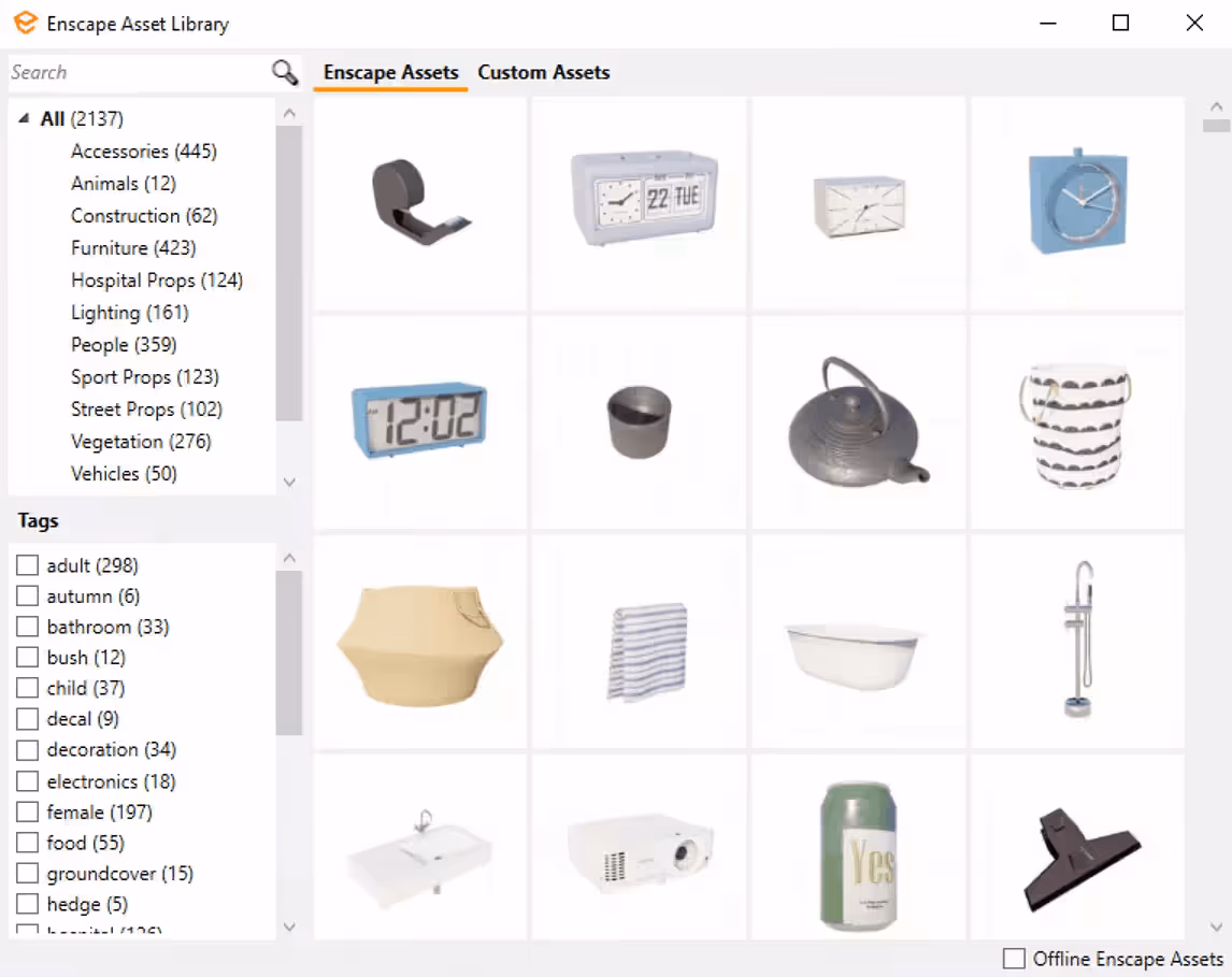 However, when evaluating convenience and out-of-the-box usability, the more meaningful comparison lies in their native asset libraries. For many firms, the ability to drag and drop ready-made, optimized assets directly into a scene can significantly reduce production time.