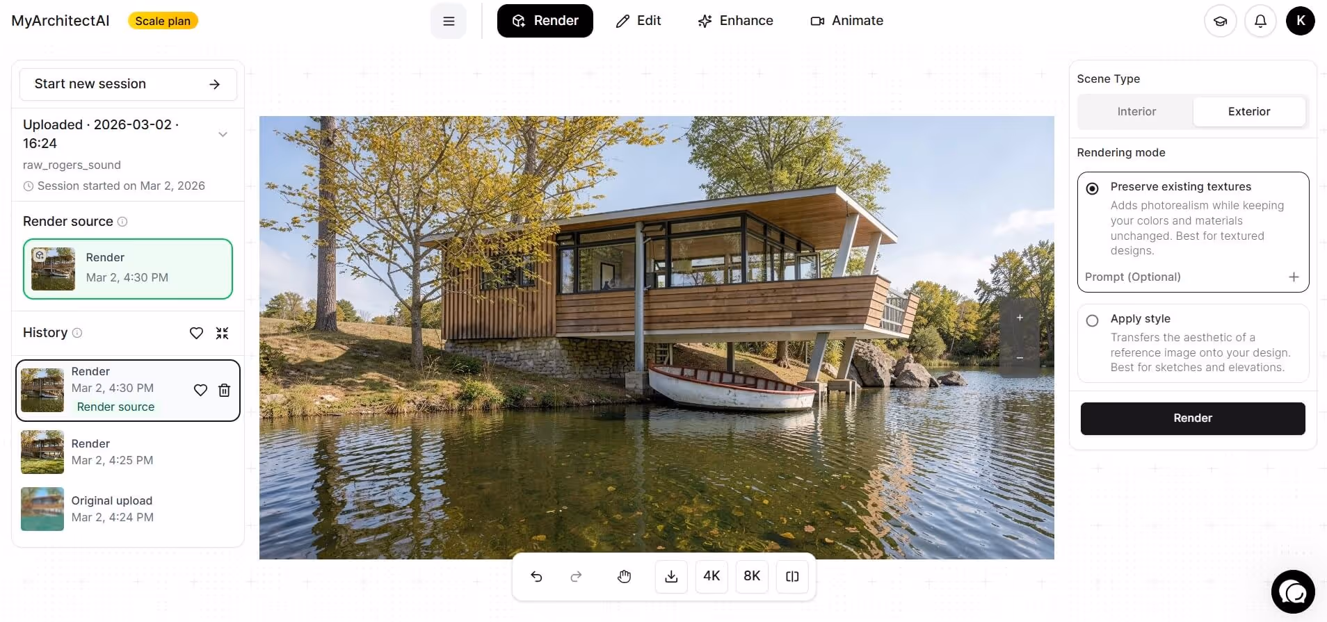 It's also worth noting that many firms don't rely on a single tool. Some use external AI platforms like MyArchitectAI for early-stage ideation and rapid visualization, then move into Enscape or Twinmotion to finalize and present.
