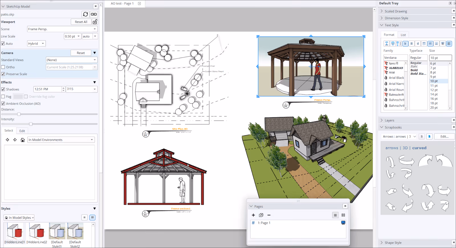 SketchUp: SketchUp Pro incluye Layout para documentación 2D. Es capaz de crear dibujos profesionales con anotaciones y bloques de título, pero una vez más, requiere más trabajo manual. Ten en cuenta que las etiquetas de SketchUp ahora se traducen en capas en las exportaciones en formato DWG, lo que ayuda a la hora de colaborar con ingenieros y contratistas.
