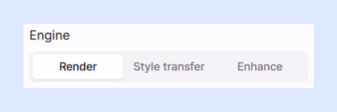 MyArchitectAI has 3 rendering engines: Render, Style transfer, and Enhance.