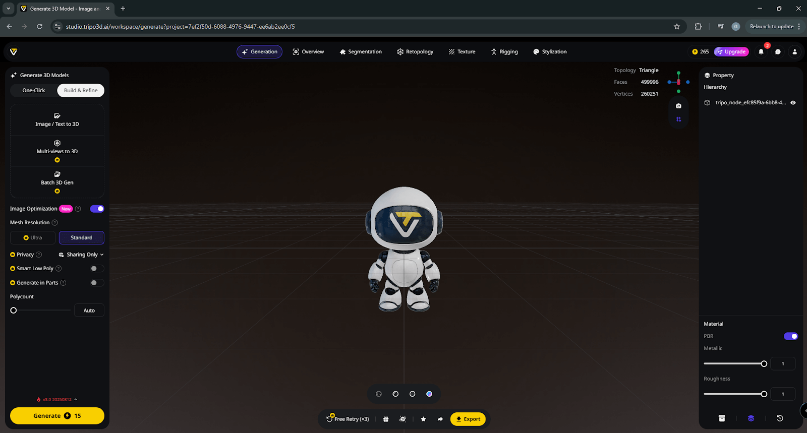 Hunyuan lets you generate a plain 3D shape or a textured version of your reference image. Shapes render in roughly 20 seconds, and textured models typically take under 60 seconds, depending on how detailed they are.