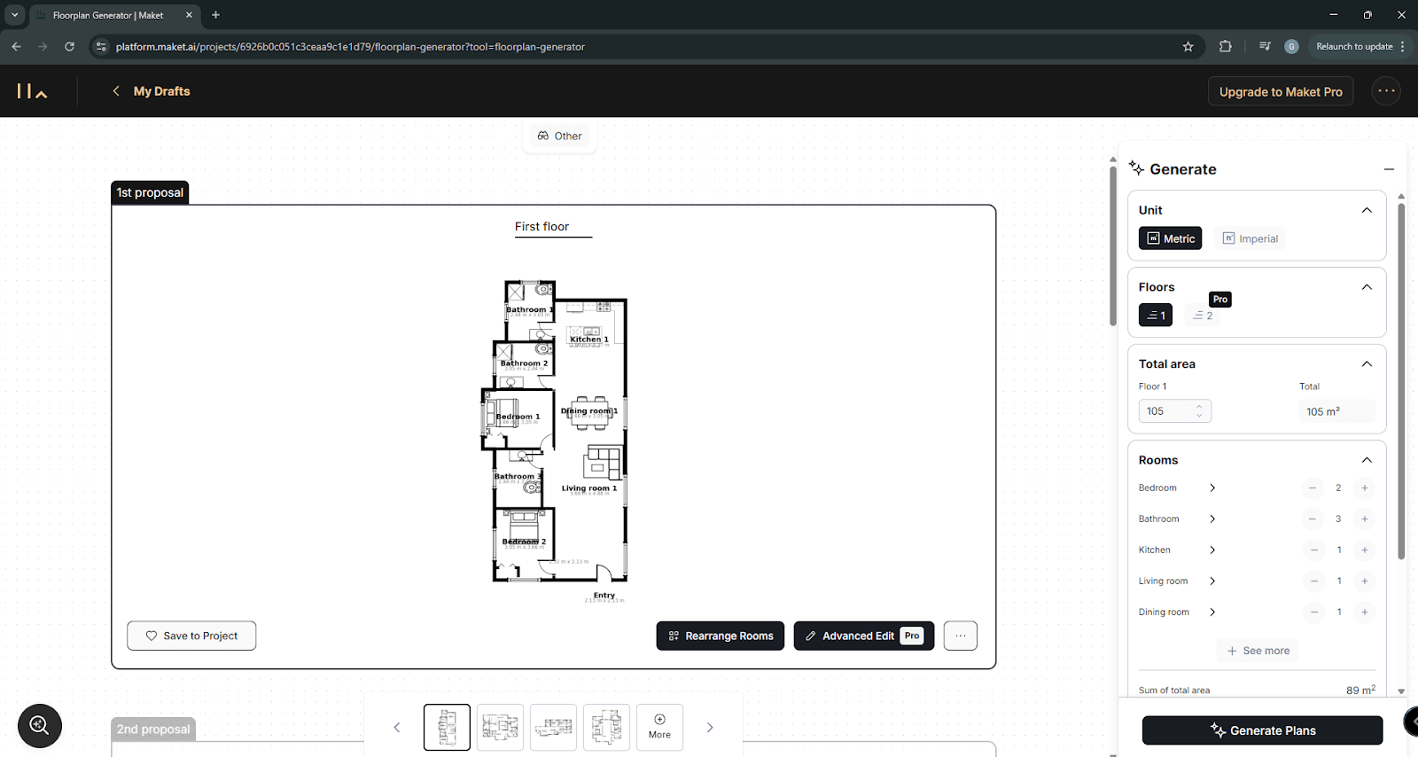 Maket generates residential floor plan concepts from short descriptions, letting designers explore many layout variations instantly. It focuses on early-stage planning, accounting for site conditions, program requirements, client needs, zoning rules, and budget considerations, so teams can make faster and more informed layout decisions.