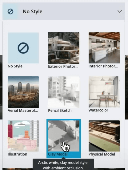 2. Style transfer, which applies the style of a reference image to your design. Great for early ideation and rendering sketches and line drawings.
