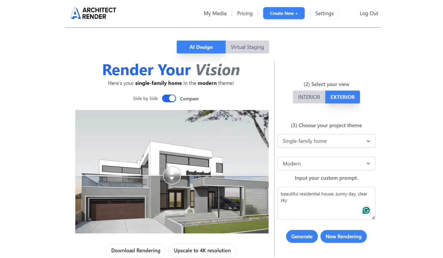 One of the easiest and fastest AI interior rendering programs on the market, MyArchitectAI will visualize your designs in under 10 seconds per scene without any specialized skills.