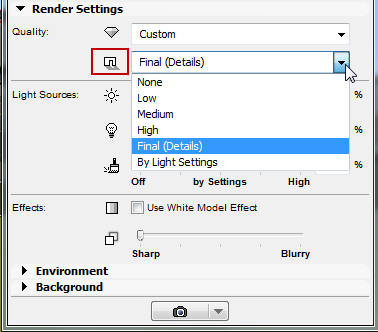 Higher settings improve visuals but cost more render time.