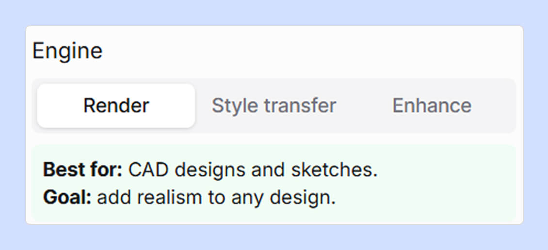 The Render engine is perfect for quick client presentations where you need to show the actual design (and not an artistic or half-baked-in-hurry interpretation).