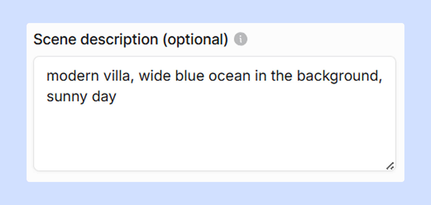 In MyArchitectAI, just describe your vision. e.g., "modern villa, wide blue ocean in the background, sunny day."