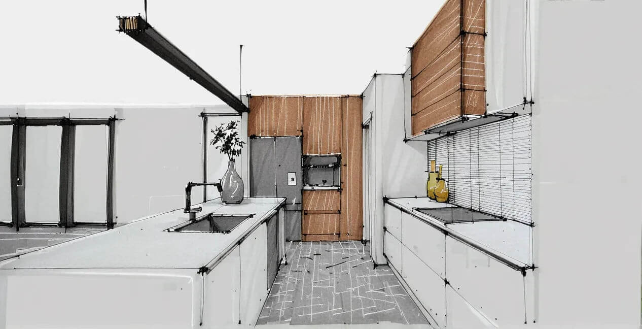 While photorealistic visualizations lock you into decisions early, marker renders do the exact opposite: they keep the concept loose, so clients feel invited to co-create instead of focusing on the doorknob color.