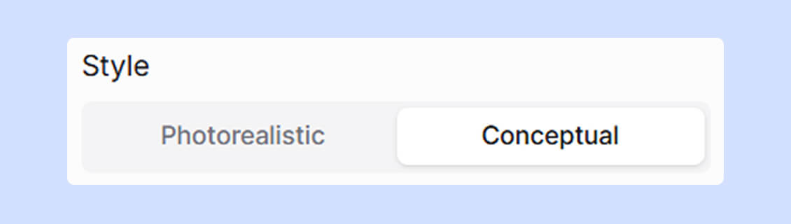 5. Depending on how early you're in the design process, select between conceptual and photorealistic styles.