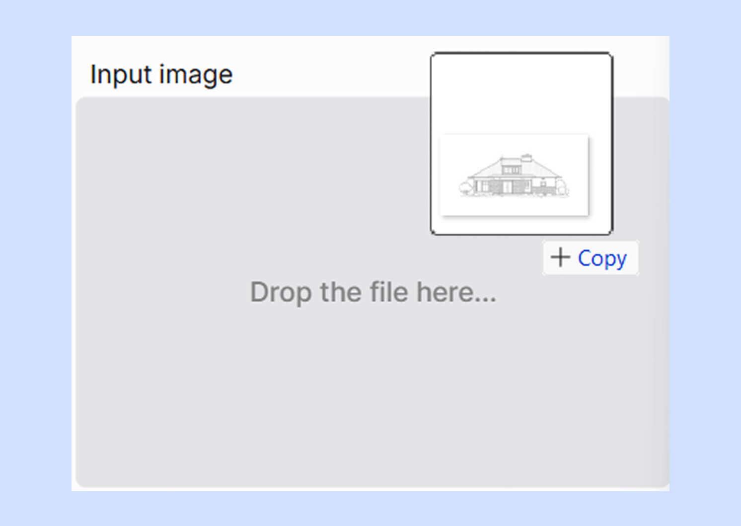 2. Upload an image of your drawing. Make sure to remove any dimension lines and signatures beforehand, as they might be interpreted as a part of the design.