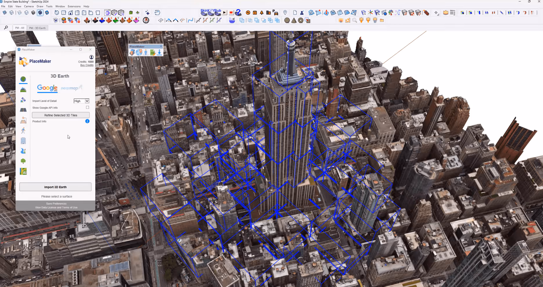 Basta disegnare un rettangolo attorno al sito e PlaceMaker recupera dati 3D accurati da più fonti. Puoi persino importare dati 3D di Google Earth nelle regioni supportate.
